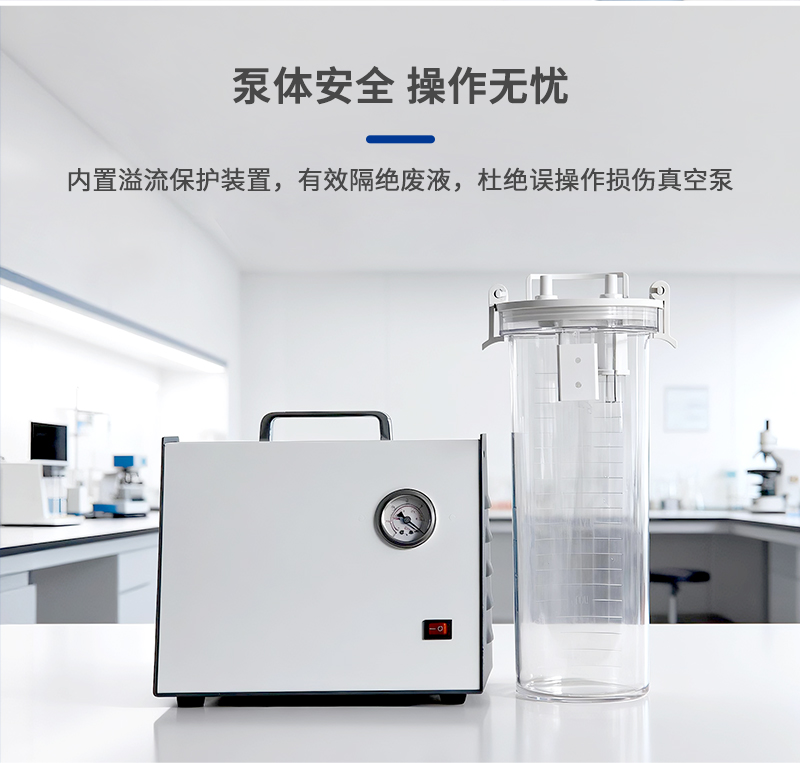 7、過濾系統帶溢流保護裝置,可防止誤操作導致廢液流入真空泵;