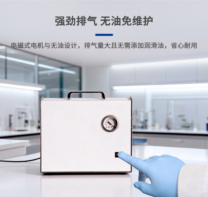 8、真空泵采用電磁式電機,活塞直線往復運動產生壓縮氣體,排氣量大;